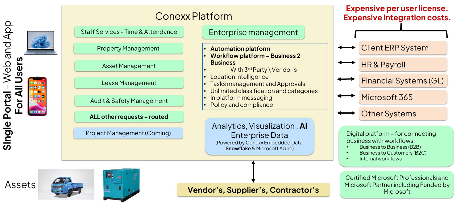 Conexx brings your workflows, assets, procurement, and resources into one connected system—reducing complexity and improving efficiency.